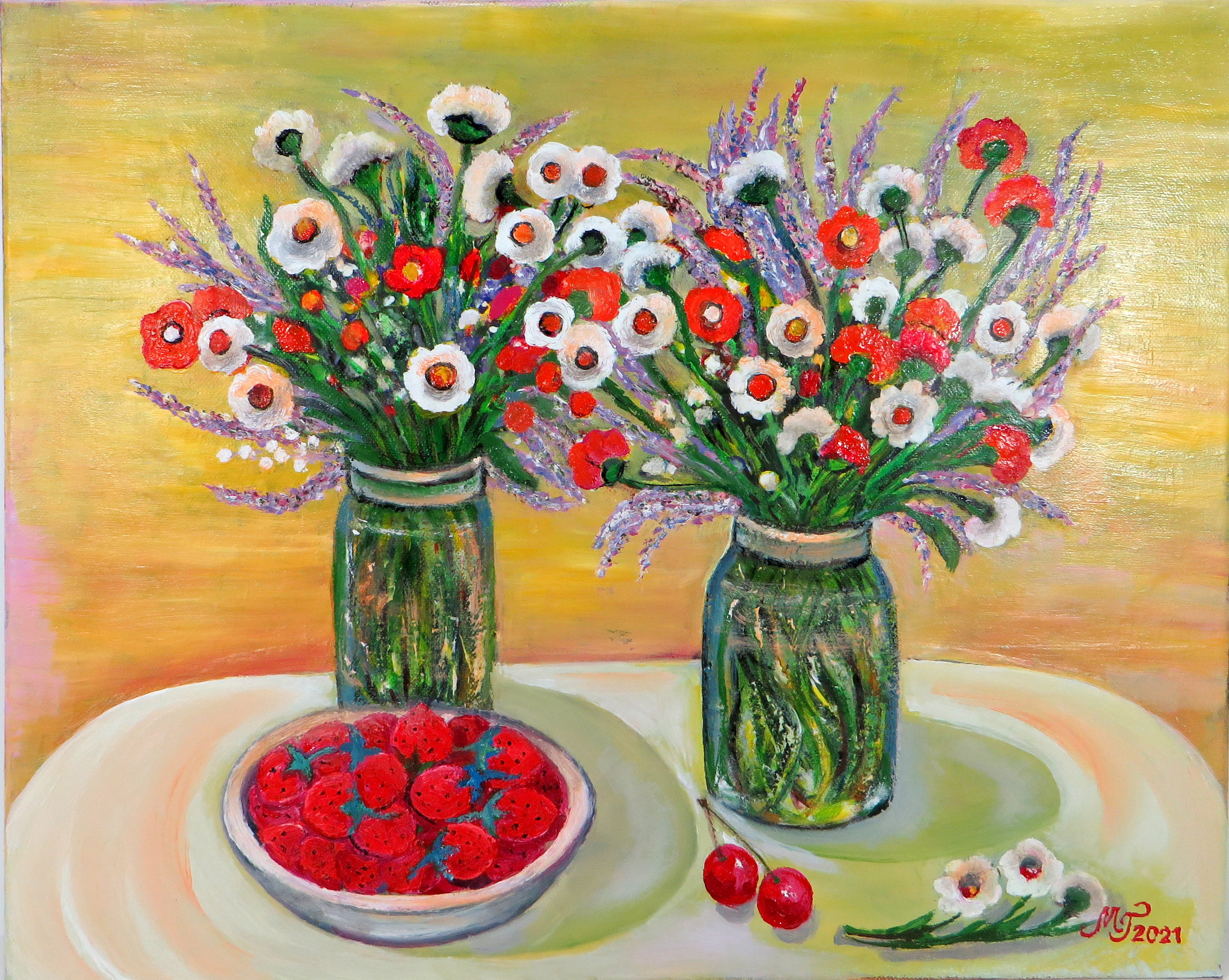 ![]() Зима с църква - темпера 48х36 | ![]() Кошница с грозде - масло 62х67 |