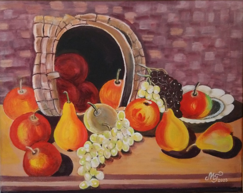 ![]() Кошница с ябълки и круши - масло 53х63 см | ![]() Пано в червено - гваш 40х40 |