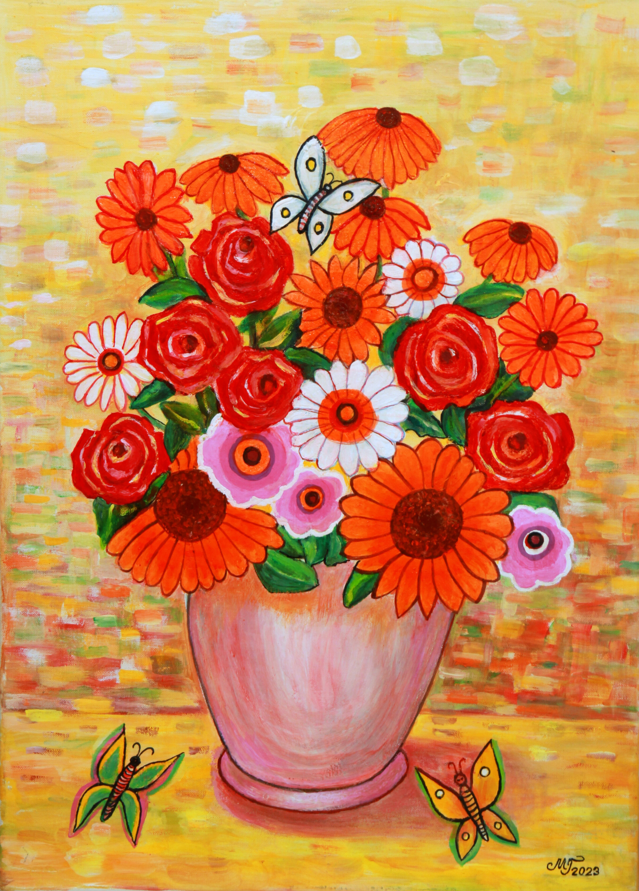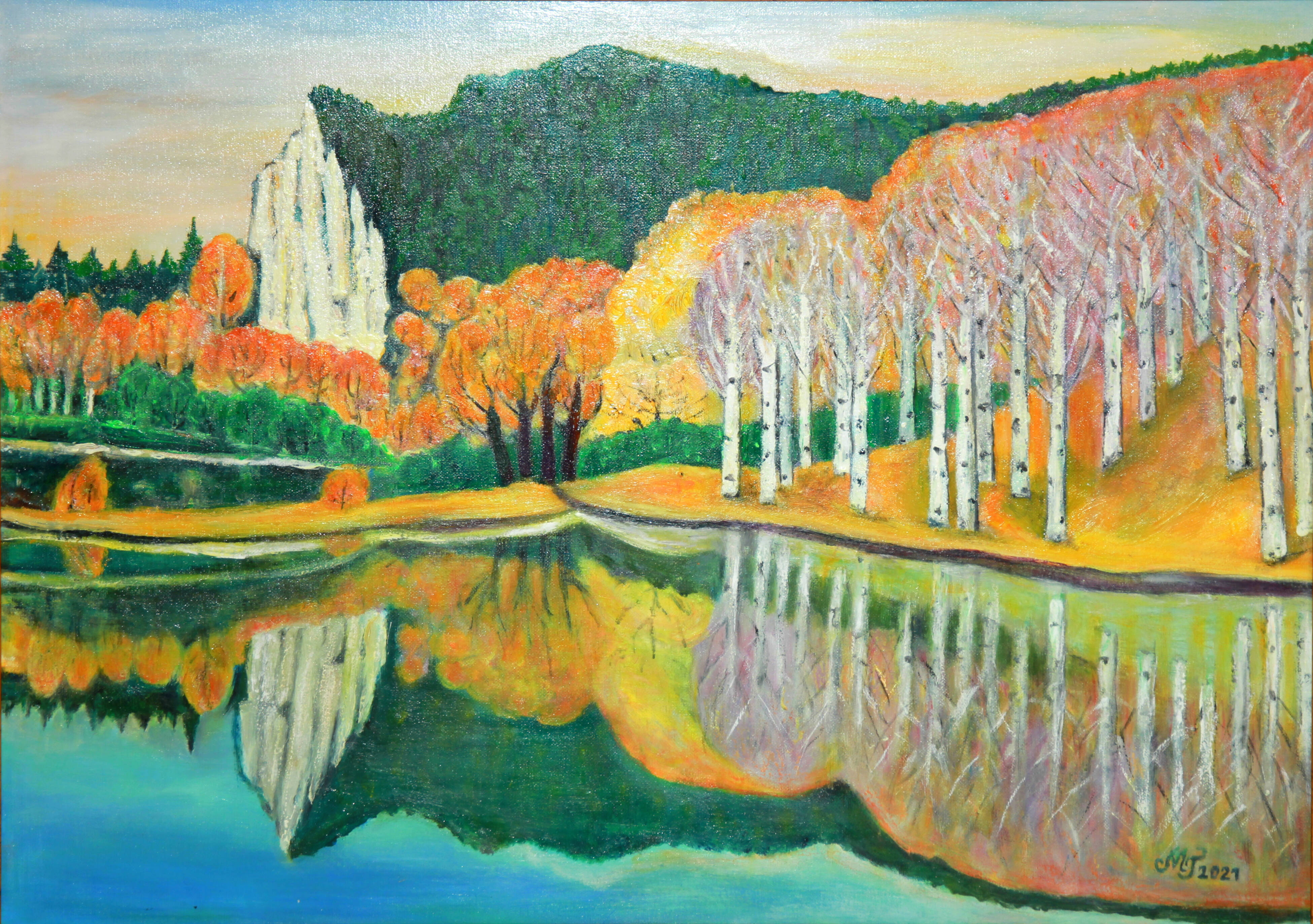 ![]() Пейзаж в синьо-бели брези - темпера 45х55 | ![]() Ваза с цветя и пеперуди - гваш 75х55 |